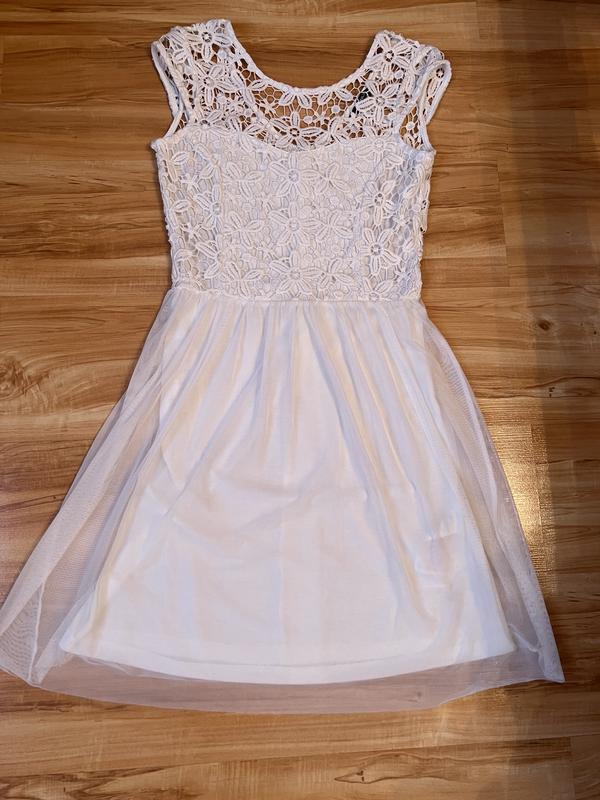 Класне плаття від only, можна носити під кроси, і як нарядне. Гарний верх з якісного мережива- дуже гарна в‘язка, перед має підкладку, а спина лише з мережива. Спідниця фатінова. Стан ідеальний. Розмір 36/ S.