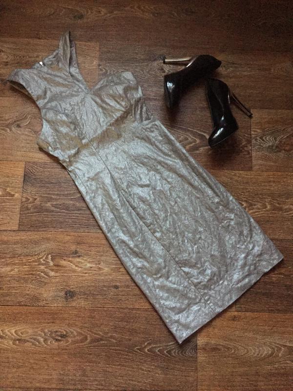 Оригинальное платье футляр серебристого цвета,ткань парча эластичная, хорошо тянется,идеально садится по фигуре! Верх платья необычный с разной по ширине бретелями,за счёт этого одно плечо оголено больше другого .