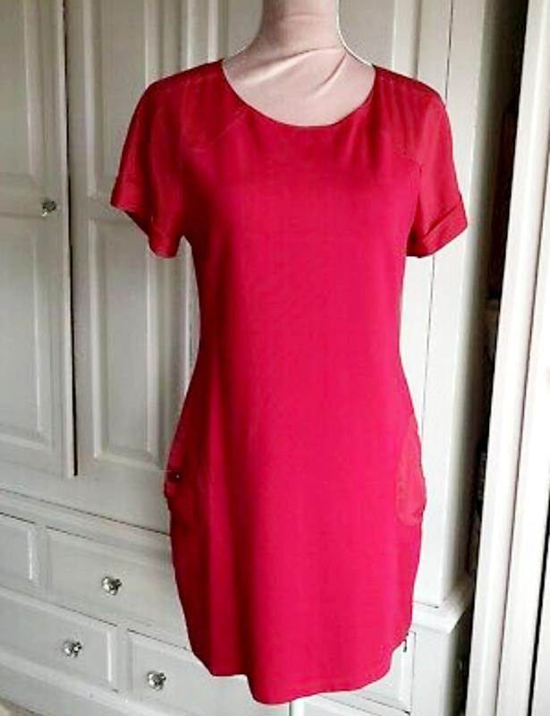 колір темно рожевий неймовірне поєднання шовковистої тканини з трикотажем довжина 85, між проймами 46 пот 42 поб 48