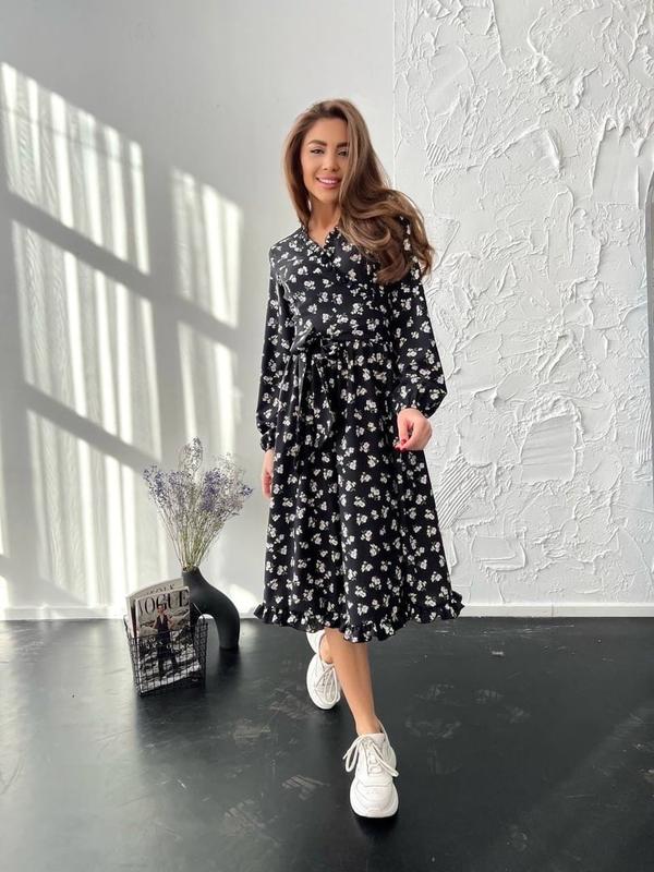 Платье арт. ok. 669 Ткань: шёлковый Soft Цвет: чёрный Размер: S-M, L-XL Верх - имитация запах. Пояс вшит в платье. На спинке потайная змейка. Карманы по бокам. Рукав 62 см. Длина изделия 110 см. Цена:830 грн