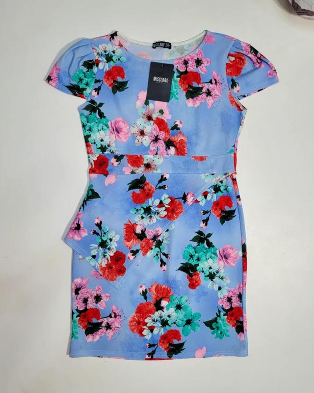❤фактурне плаття в квітковий принт, баска, тягнеться добре ☑ розмір - 16 Пог 49-55, піт 42+, побіди 50-56, довжина 87 ☑ Бренд miss look ☑ стан - нові з біркою Фото на тілі не роблю!