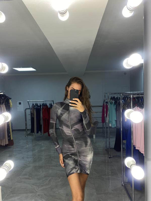 Неймовірна сукня на змійці з переду. Актуальний принт, приємна тканина. Робить ідеальний силует