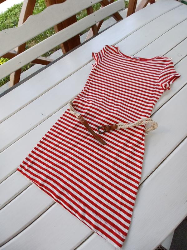 Плаття в смужку,тканина тягнеться,є невелика зачіпка,так купила(останнє фото),непомітила,альо в очі вона некидаєттся,також ремінець потріскався,але його можна замінити.