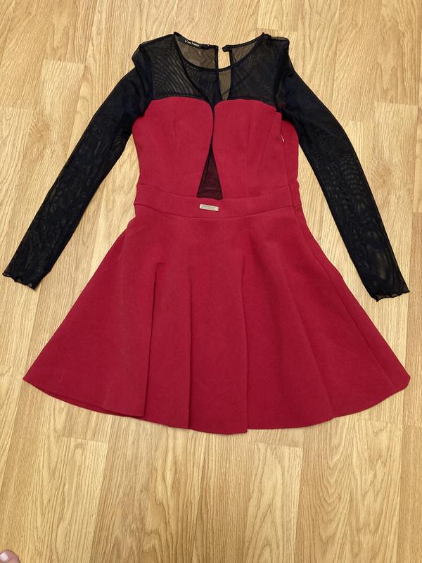 Шикарна сукня, плаття червоне оксамит з прозорими рукавами, розмір М