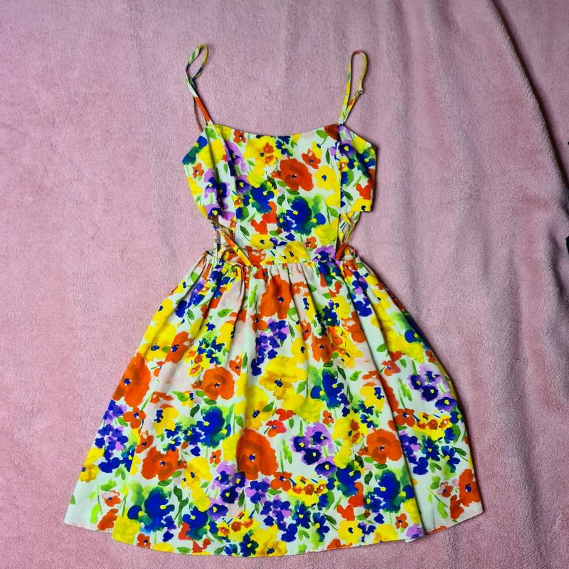 Продам квіткове плаття з відкритими боками. Виглядає красиво. У відмінному стані. Тканина легка, не просвічується. Розмір S, невелика M.