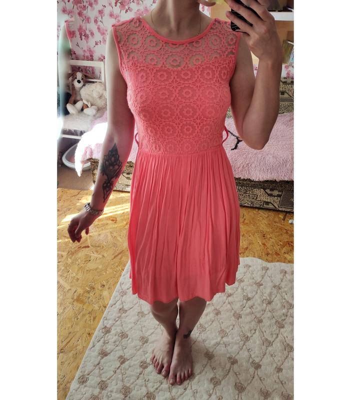 Сукня персикового кольору з легкої натуральної тканини, на фото параметри 90/70/100, ріст 172см