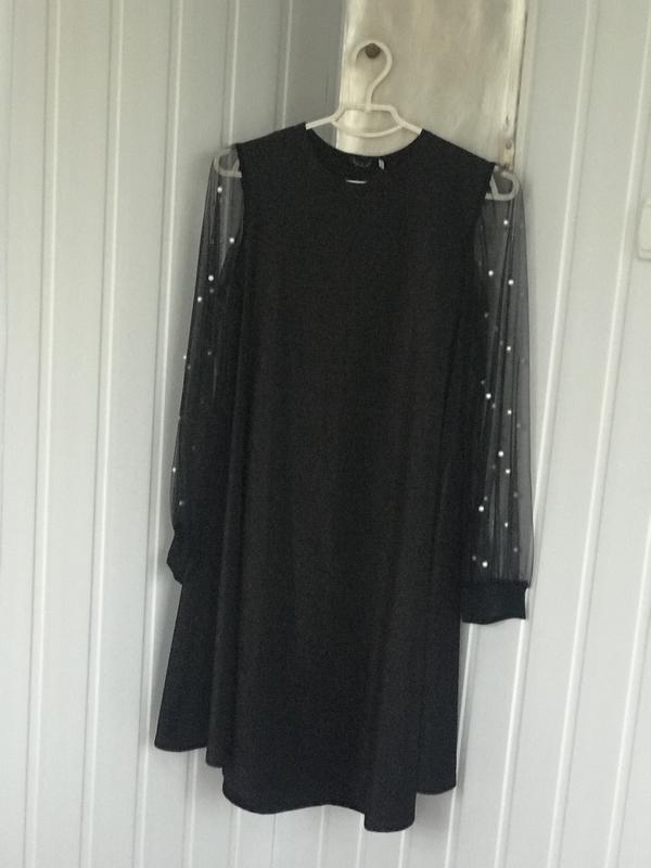 Сукня жіночого крою до коліна, люрексною ниткою, прозорі руками з перлинками, підійде на дівчат які мають живіт(гарно приховає) за рахунок того що не облягає а вільне