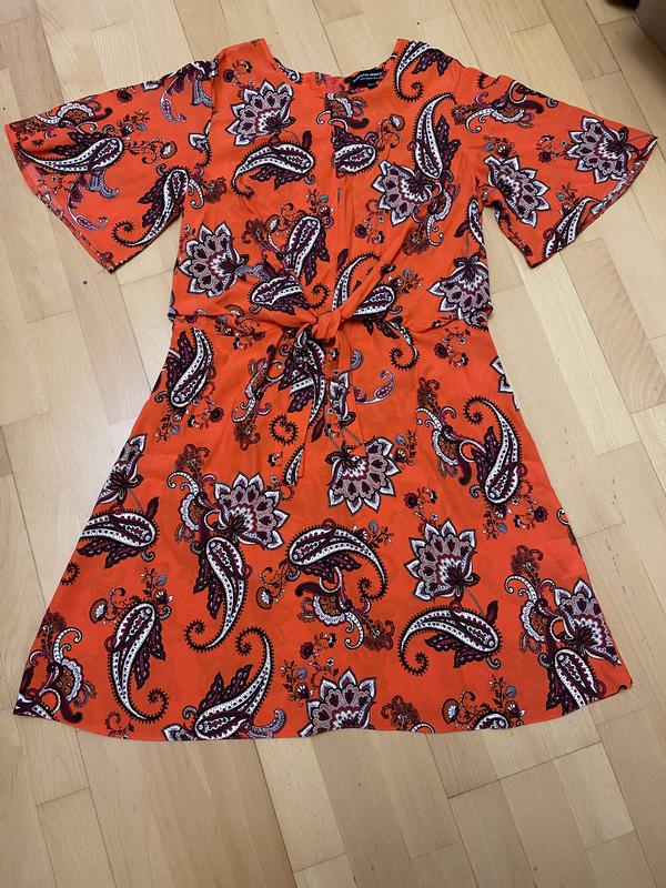 Плаття з віскози 14 розміру, Румунія. Бренд Dorothy Perkins. Плечі 44 см, ПОГ 53 см, ПОТ 45 см, ПОС 65 см, довжина до талії 45 см, загальна довжина 98 см. Одягнуто 1 раз. Без дефектів.