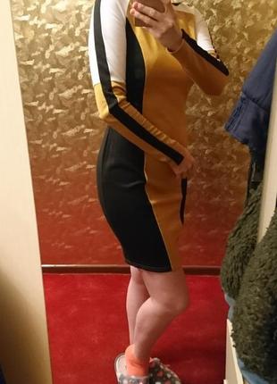 сукня, розмір 44 або М, приталене, відмінно сідати по фігурі, за рахунок чорних боків, стрункий. колір: чорний/кремовий/гірчичний дефектів немає, одягнене 3 рази