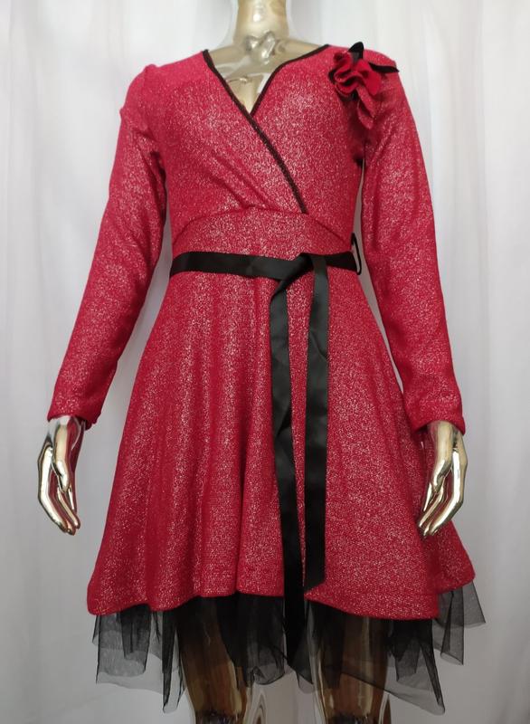 Б/н0175 Сукня червона, з люрексом. Низ з підкладом. Пояс і брошка знімаються. Б/р. уценка