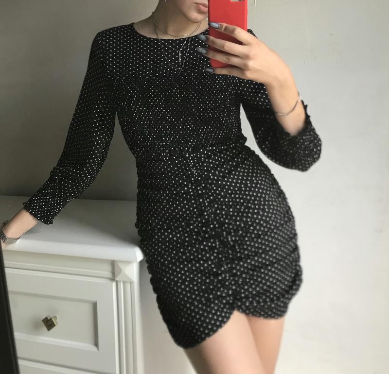 Розмір М. Чорна у білий горошик . Вдягала 1 раз . Стан ідеальний . Сидить по фігурі шикарно