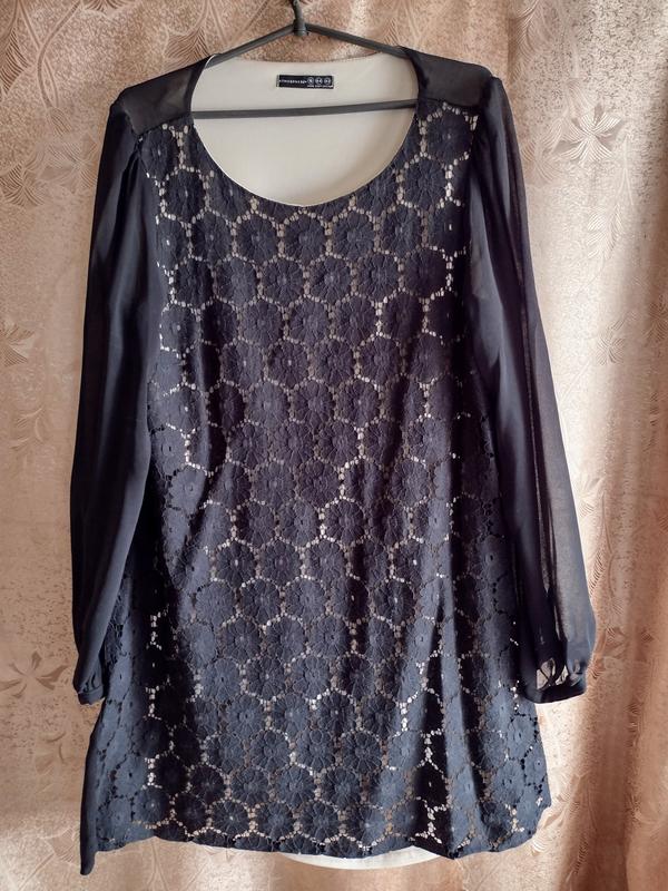 комбінована сукня, гіпюр на підкладці, не мнеться, зручна, підкладка тягнеться. пог-50-52 пот-50 поб-57-58 довжина -83