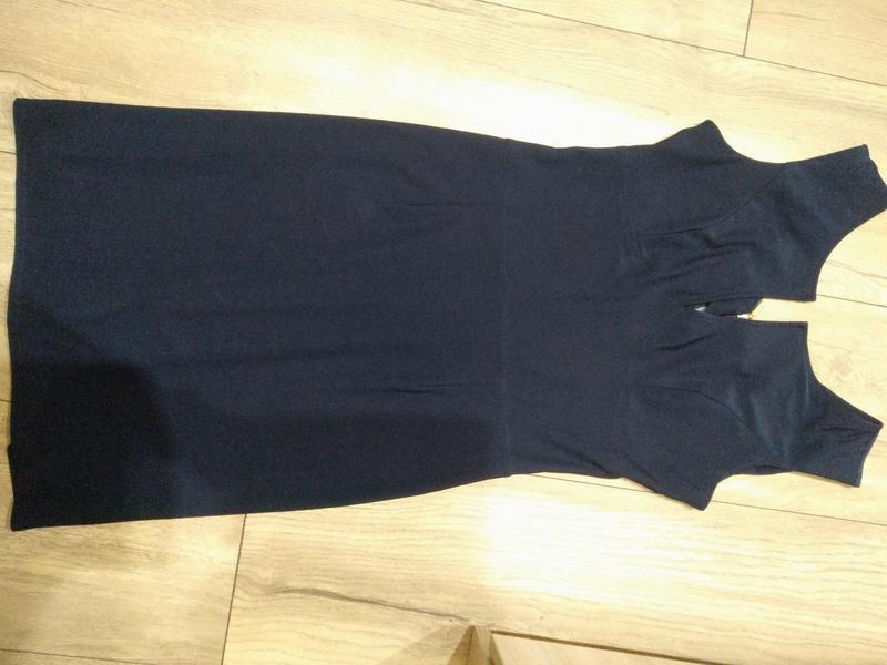 Темно-синя сукня. Має екстремальний виріз, хто любить таке, то тоді вона ваша.))