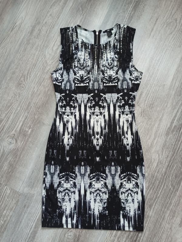 Стильне чорно біле плаття футляр від H&M з оригінальним оздобленням. Розмір S але буде і на М, тканина тягнеться.