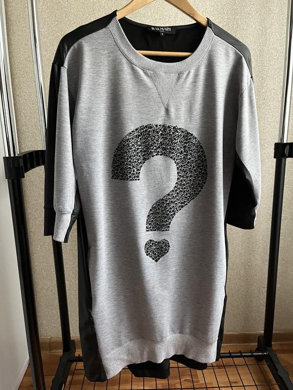 Плаття спереду сіре коротше, ззаду чорне довше, з карманами, довжина спереду 85 см, ззаду 90 см