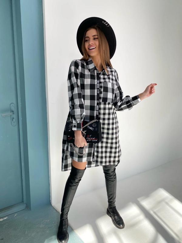 Подовжена сорочка Мод.826олиф Розміри 42-46, 48-52 Тканина: бавовна на байку Колір: чорно-біла та чорно-червона клітина Довжина спереду 85 см Довжина по спинці 102 см