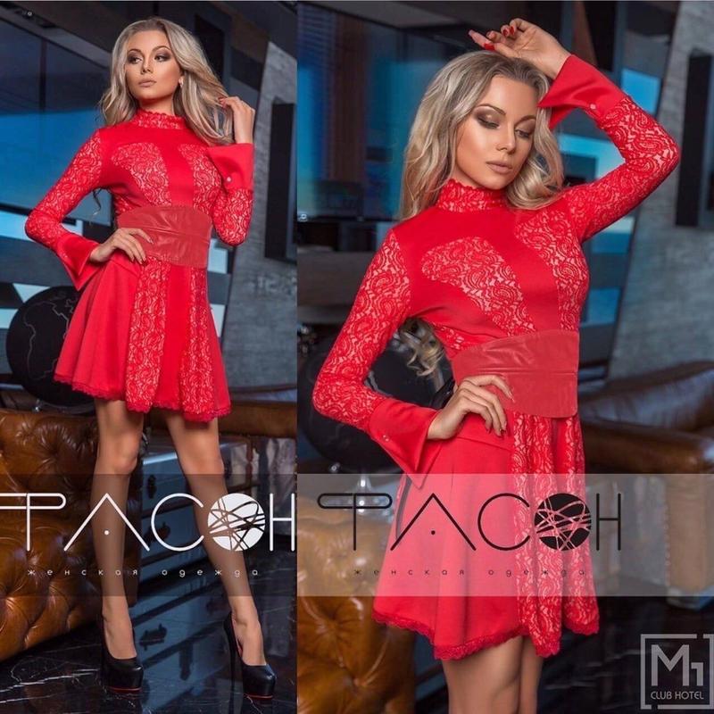 Д. Платье Модель:521 Цена : 200 грн Размеры: 42;44;46;48 Ткань:стрейч гипюр, дайвинг, эко кожа Длина: 86 см.