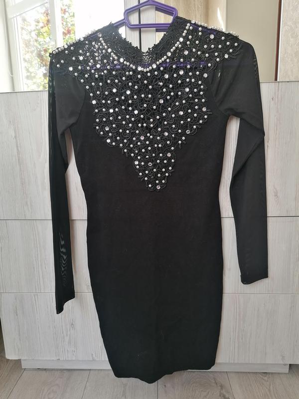 Дуже гарна сукня, приёма тканина, рукава сіточкою, перед гіпюр з камінцями, позаду вверху гарний гіпюр. Підійде на не високу ріст, розмір хс - с. Від плеча до низу - 80 см
