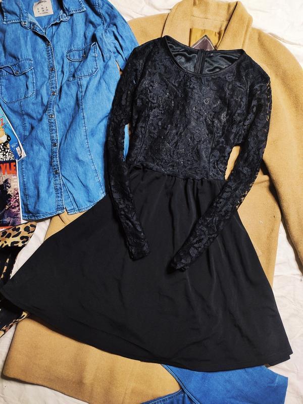 Плаття чорне мереживо, гіпюр класичне вільна спідниця довгий рукав