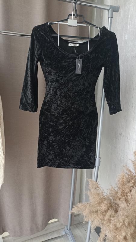 Оксамитова міні сукня з рукавом