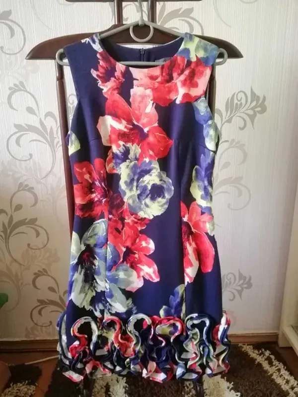Нарядное красивое платье, с ярким принтом. Размер S, красиво подчеркивает талию. Оригинальній фасон. Состояние идеальное.