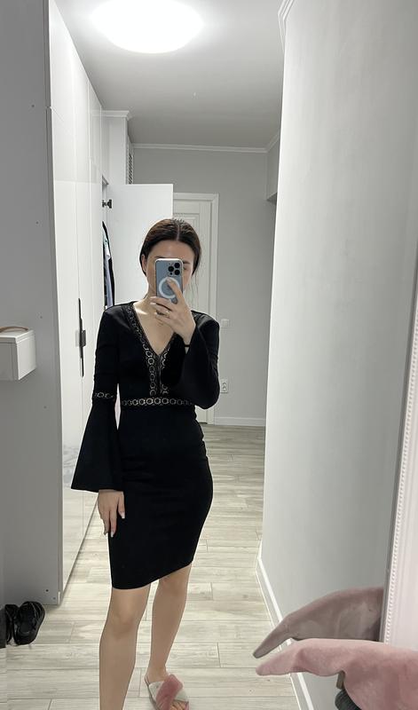 Маленька чорна сукня з гарним мереживом і цікавими рукавами ,розмір xs,на замок ззаду До коліна на зріст 166