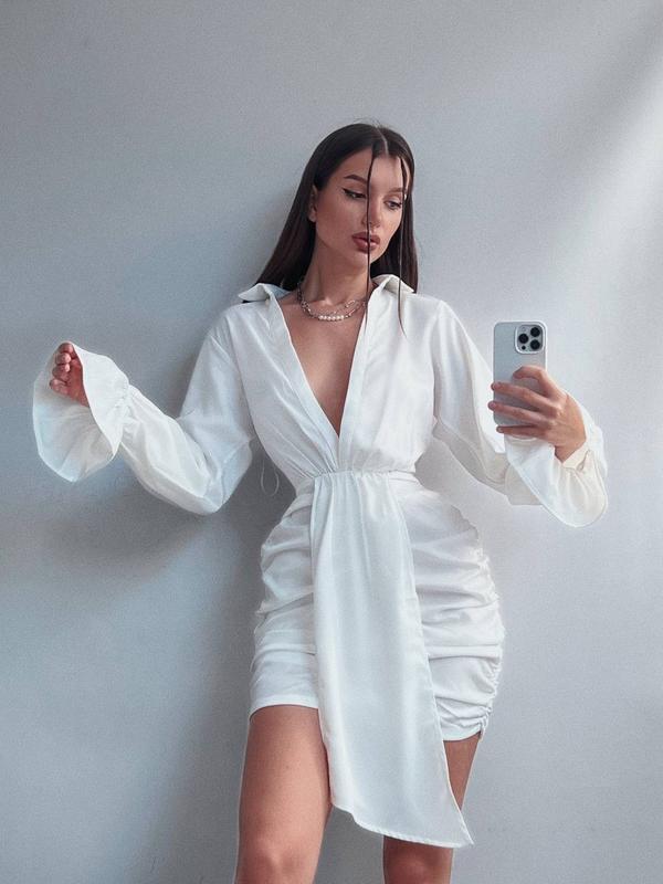 Сукня біла з рукавчиком, з боку призбирано, рукав фонарик , V виріз