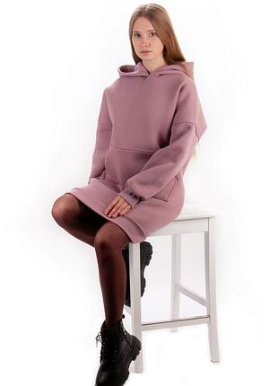 Розміри: 42-52 Полотно: тринитковий футер з начосом Колір: чорний, бордовий, червоний, т.пудра Стильна сучасна сукня-худі для жінок, виготовлена з теплого та м'якого полотна "Футер тринитковий з начосом". Модель вільного крою виконана в стилі "Oversize", має капюшон та кишеню "Кенгуру", тканина надзвичайно приємна до тіла. Дана сукня представлена в базових кольорах, що дає можливість комбінувати її з будь-яким верхнім одягом та взуттям. Простий дизайн - ідеальна основа для створення модного та практичного образу. Склад: 85% бавовна, 15% ПЕ Рекомендації по догляду: прати при температурі не більше 30 ° C. Допускається машинне прання в режимі "ручне" або "делікатне".