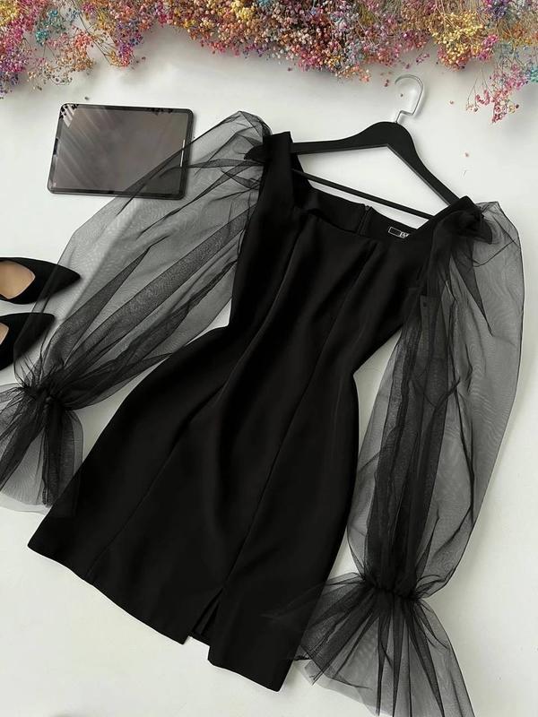 Модель 224 Сексуальна облягаюча міні-сукня з квадратним вирізом та пишними рукавами❤️ Тканина: костюмка, фатин Кольори: чорний, червоний, молоко Розміри: 42-44, 44-46 🏷Ціна: 610 грн
