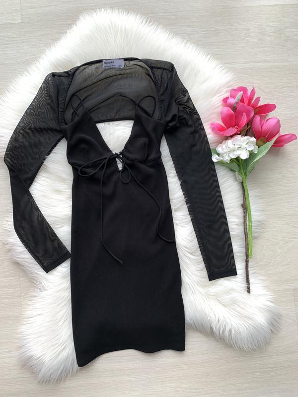 Стильное платье на бретелях ,с рукавами из прозрачной ткани ,невероятно красивое и необычное .