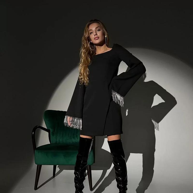 ❤️❤️❤️ЗНОВУ В НАЯВНОСТІ ❤️❤️❤️ Сукня з бахромою зі стразами Модель 454/63 Тканина : креп костюмка Розміри: 42-44; 44-46 Кольори: чорний, Молоко Ціна :950 грн