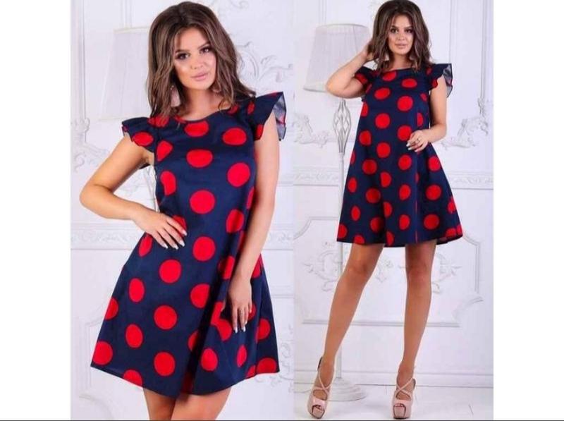 Коттон Боковые карманы Цвет тёмно синий в красный горох