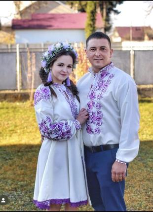 Комплект вишиванок. чоловіча вишиванка. жіноче вишите плаття