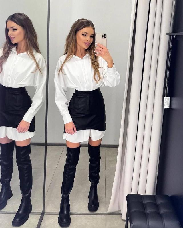 НОВИНКА🔥 Костюм Мод. x 9335 Ціна: 689 грн 🏷 Розміри: 42-44, 44-46 Тканина: юбка еко кожа з начьосом , рубашка - котон