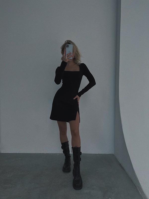 ▫️Тканина: креп дайвинг ▫️Колір : чорний , червоний ▫️Розмір : 42/44 46/48 🌿 Сукня футляр із щільного трикотажа за приємною ціною . Приталена модель з акцентним вирізом та розрізом по нозі в довжині міні 🌿