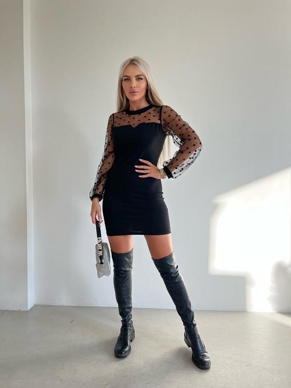 арт. rkot. 521 Розміри: S, M, L, XL Тканина: стрейчевий креп дайвинг, рукава - сітка горох Колір: чорний Супер якість Ціна: 650 грн