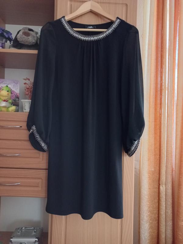 Чорна коротка сукенка Wallis,рукава і горловина якої оздоблена перлинами та стразами.Оздоблення виглядає розкішно і вам не потрібно буде думати про прикраси під наряд.Шифоновий широкий рукав.Прямий силует,що підкреслює фігуру.Витончено і стримано.В такому платті ви будете відчувати себе королевою. Стан ідеальний.Заміри:ПОП-38,ПОГ-46,рукав-55,довжина-86.Матеріал дуже добре тягнеться. Заходьте,будь ласка, в мій магазин,де ви знайдете багато якісних і брендових речей.Підписуйтесь на постійні оновлення.Буду завжди рада вас бачити і познайомитись ближче💛💙🌸🌸🌸🌸🌸🌸🌸🌸🌸🌸🌸🌸🌸🌸