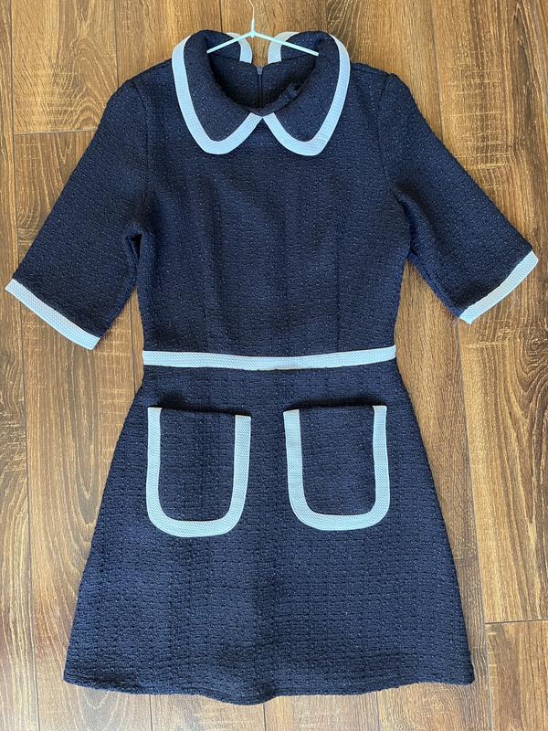 Стримана сукня синього кольору. Букле. Дуже круто підкреслює фігуру. Розмір С