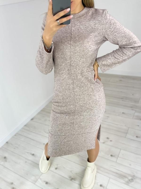 Плаття арт. ha. 477 Тканина: ангора двостороння щільна Колір: чорний, бежевий, блакитний Розмір: 42-44, 46-48, 50-52 Ціна 770 грн Сукня довжина міді, з кишенями, двома розрізами з боків. Тканина приємна до тіла, м'яка, дуже добре тягнеться