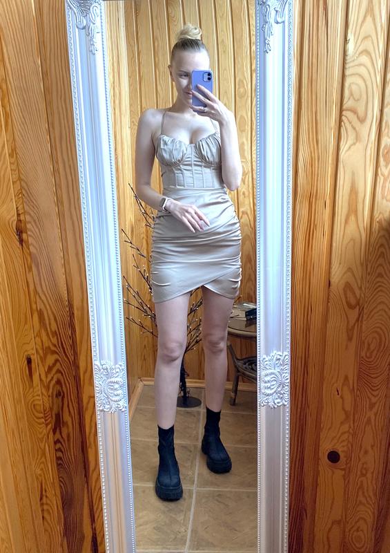 Мініатюрна облягаюча атласна сукня від бренду plt