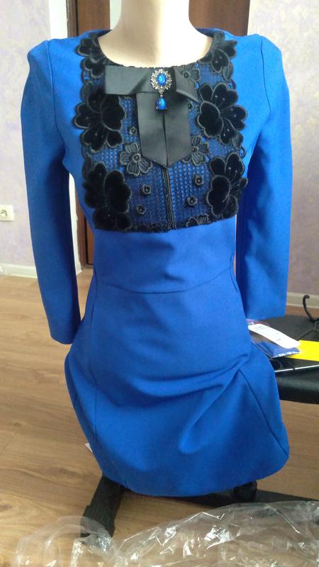 Короткое Платье электрик, карманы внутренние. Сзади по спинке немного распорядок по шву. Размер 42(66/82).но по факту идёт на 40.