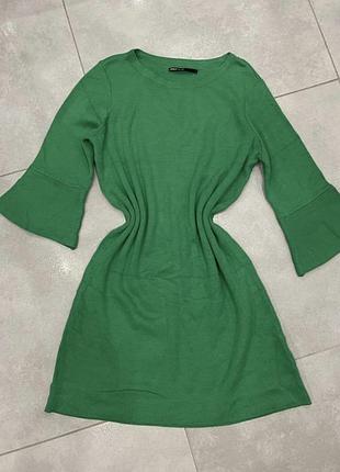 Зеленое платье с модным рукавом 3/4 колокольчик, длина 85, пог в спокойном состоянии 53, растягивается до 73, пот 53-73, поб 54-74, смотрится супер, если Вы устали от серости тонов, это оно, цвет молодой травы, всегда освежает, ткань 51% вискоза, 34% хлопка и 15% полиестера, ткань на ощупь очень приятная и теплая, но вязка не толстая, фирма Only