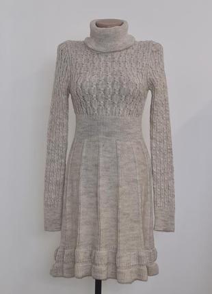 Дуже красиве в'язане плаття бежевого кольору від турецького бренду Parkhande. Розмір 42-44: об'єм по грудях від 74 до 84 см, об'єм по талії від 64 до 74 см, плече 7.5 см, довжина рукава 67 см, довжина плаття 88 см, довжина горловини 24 см.