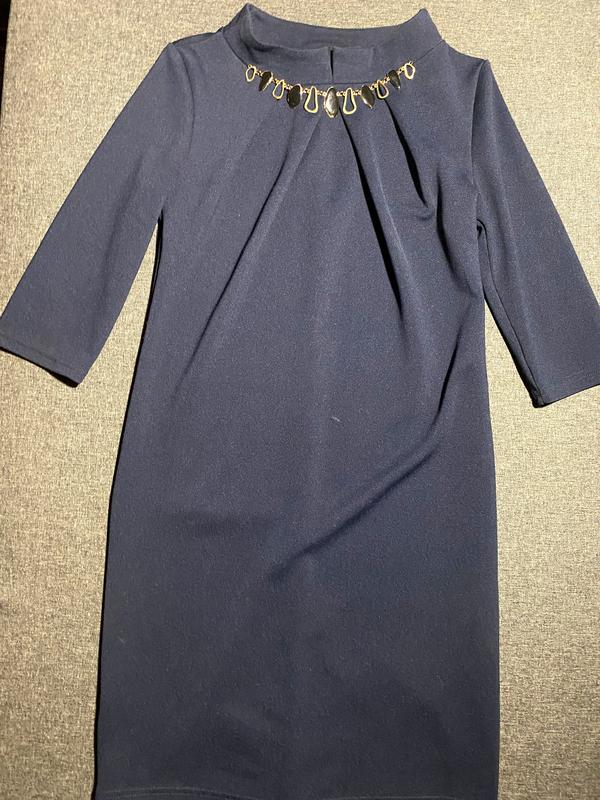 Сукня темно синього кольору. Тканина приємна на дотик. Рукав 3/4 Довжина 89 Об'єм грудей 38 Талія 38