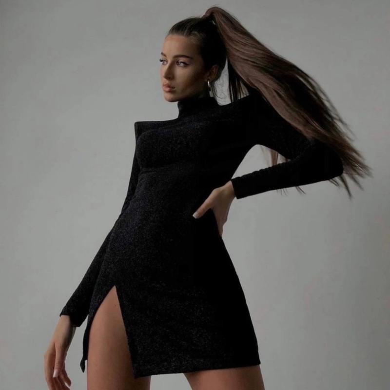 Сукня міні 💣 ▪Код товару: 406 495 грн🔥 ▪Тканина: трикотаж люрекс ▪Колір: графіт, чорний ▪Розмір: універсал (S-L) ▪Параметри виробу: Довжина виробу-91 Довжина рукава-63 ОГ-77 ОТ-63 ОС-86 📌Ефектна обтягуюча сукня, на плічках. На нозі розріз. Тканина приємна до тіла та добре тягнеться!✅ код1555(ист)