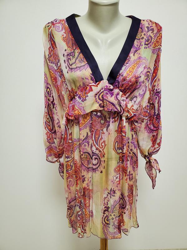 #16. Без підкладки, просвічується. Талія на резинці, рукав цільнокроєний. ПОГ 47, ПОТ 47, ПОБ 77, плече +рукав =55, довжина 83 см. Ярлика про розмір нема.