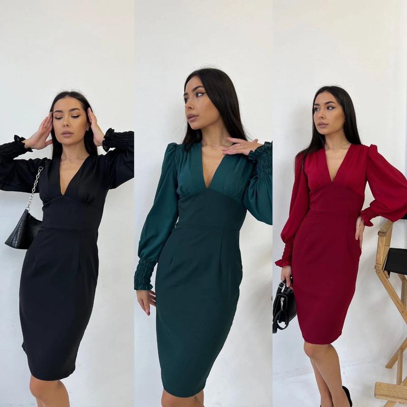Сукня Артикул: 1011 kloch Тканина: креп костюмка + шифон Розміри: 42; 44; 46; 48 Колір: чорний; пляшка; бордо ЦІНА 600 грн