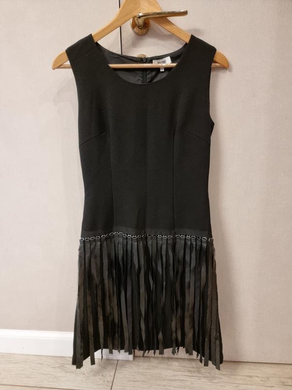 Продам платье Moschino в хорошем состоянии. Есть небольшие потертости на нескольких висюльках из кожзама. Длина платья 90 см, ПОГ 43 см, ПОТ 35см.