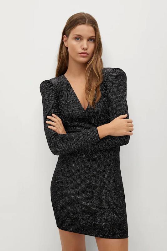 Блискуче покриття. Індивідуальний дизайн. V-подібний виріз. Надуте плече. Довгий рукав. Довжина по боках 71,2 см Довжина по спинці 86,4 см Склад: 90% поліестер, 10% еластан