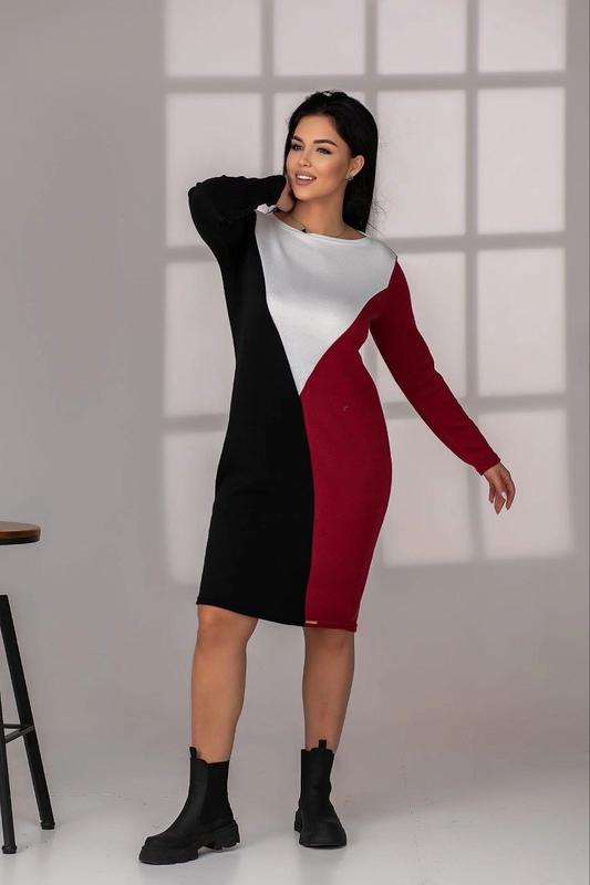 Сукня жіноча прямого силуету. ✅Мод.125 dol ✅Тканина: Ангора дабл (двостороння) відмінної якості, гарною розтяжністю. ✅Розмір:50-52,54-56,58-60 ✅Колір:сірий/пудра,чорний/сірий, Бордо/чорний,фіолетовий/бузок ✅Ціна 850 грн